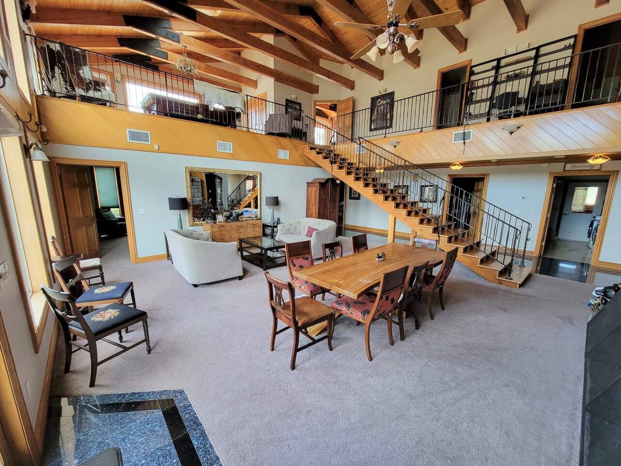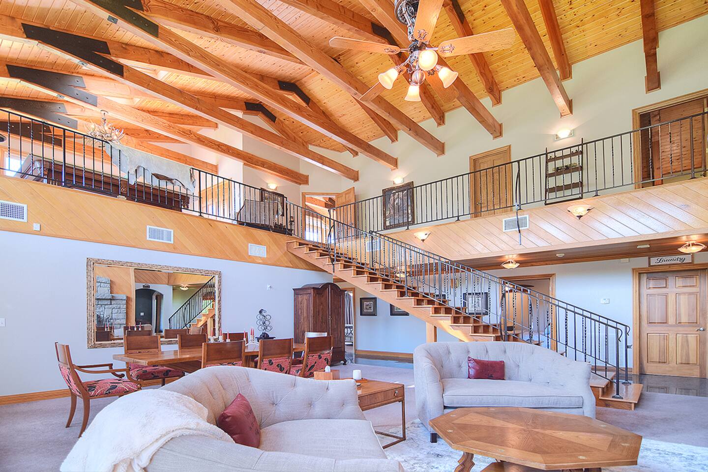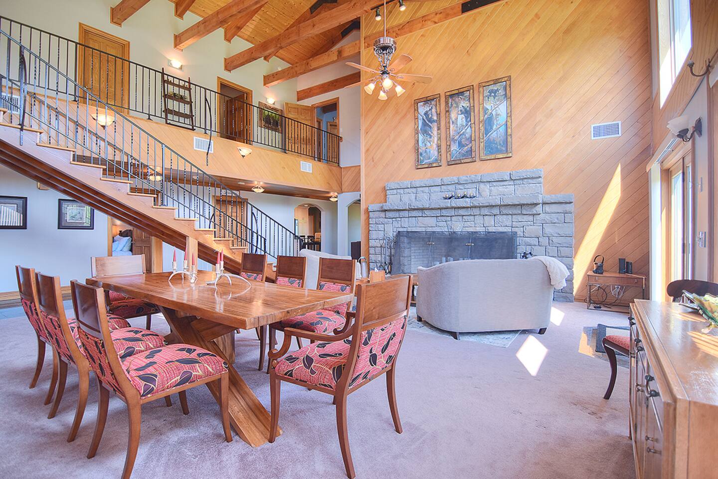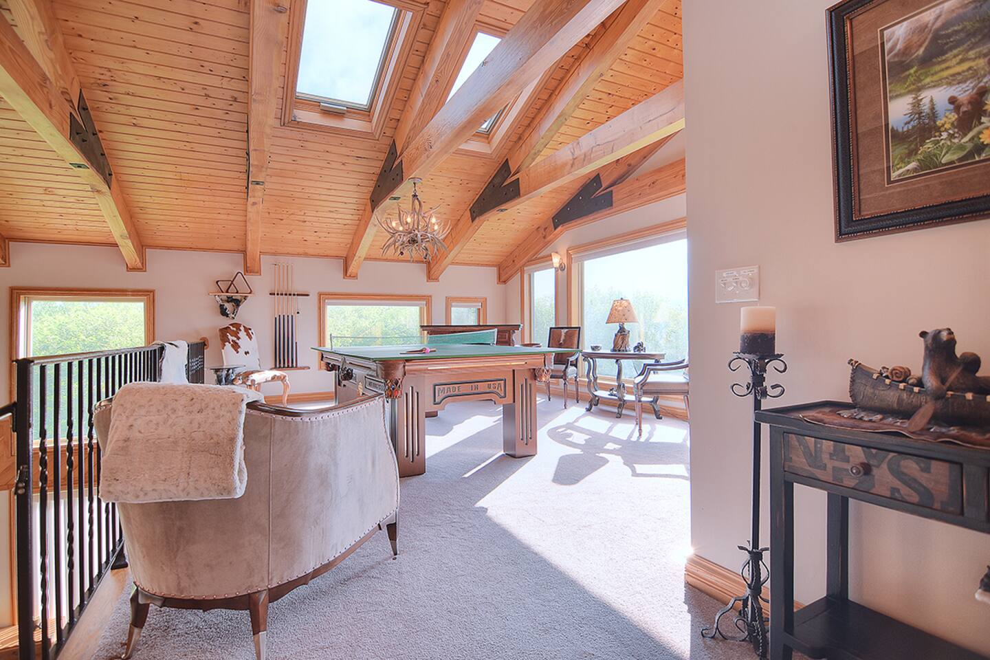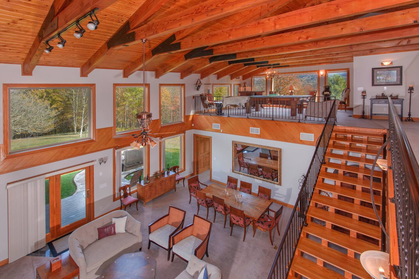 Ample outdoor furniture for entertaining in nature! Inside enjoy playing pool, ping-pong, air hockey, foosball, or a board game from the stocked upper level game loft. TV room has a 75" Smart TV and sound bar. Bring the outdoors in with the remote operated skylights & 24 ft. ceilings in main living spaces. Location Details Attractions: Sugar Mountain Ski Resort (0.4 miles), Sugar Mountain Bike Park (0.4 miles), Grandfather Mountain State Park (8.2 miles), Hawksnest Snow Tubing and Zipline (8.5 miles), Grandfather Vineyard & Winery (5.9 miles) Golf: Sugar Mountain Public Golf Course (0.4 miles) Shopping: Mast General Store (13.2 miles), The Great Train Robbery (2.3 miles), Souvenir Shirts of Banner Elk (1.5 miles), BJ’s Resort Wear (4.1 miles), Banner elf candle company (1.7 miles), GEM Mining (1.6 miles), Peabody's Wine & Beer Merchants (14.9 miles) Food & Restaurants: Reid's Cafe & Catering Co. (2.3 miles), Bella's (1.5 miles), Highlander’s Grill & Tavern (2.1 miles), The Pedalin' Pig (2.3 miles), Artisanal Restaurant (4.3 miles) Grocery: Lowes Foods of Banner Elk (2.3 miles) Hospitals: Charles A. Cannon, Jr. Memorial Hospital (7.6 miles), Watauga Medical Center (16.2 miles)
